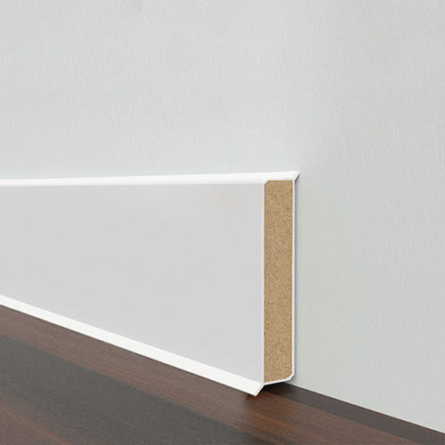 Wysokiej jakości rdzeniowa listwa przypodłogowa wykonana na bazie płyty HDF otoczona polimerem.