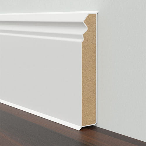 Wysokiej jakości rdzeniowa listwa przypodłogowa wykonana na bazie płyty HDF otoczona polimerem.