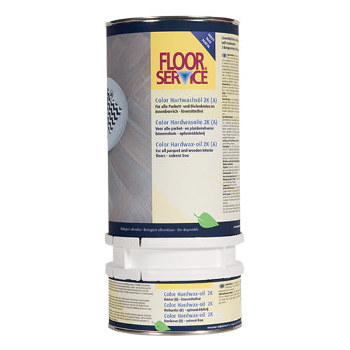 FloorService Color Hartwachsöl 2K to dwuskładnikowy, wolny od rozpuszczalników, dostępny w wielu kolorach, szybko obciążalny olej podłogowy z krzemianami. |
