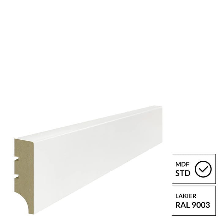 Wysokiej jakości lakierowana listwa przypodłogowa polskiego producenta wykonana na bazie płyty MDF.