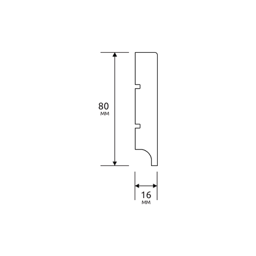 Lagrus Krym 80 NP PLUS to biała listwa przypodłogowa dostępna w rozmiarze 16 x 80 x 2440 mm w wersji MDF Plus.