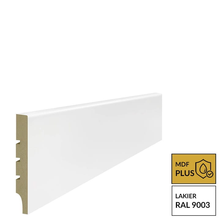 Wysokiej jakości lakierowana listwa przypodłogowa polskiego producenta wykonana na bazie płyty MDF.