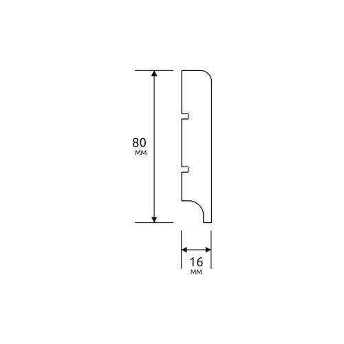 Lagrus Slim 80 PLUS to szara listwa przypodłogowa dostępna w rozmiarze 12 x 80 x 2440 mm w wersji MDF Plus.