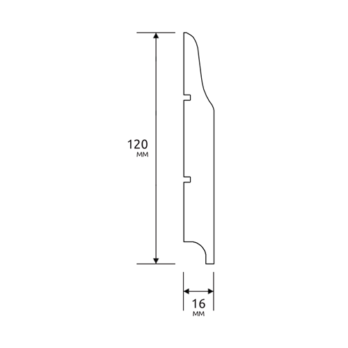 Lagrus Slim 120 PLUS to biała listwa przypodłogowa dostępna w rozmiarze 12 x 120 x 2440 mm w wersji MDF Plus.