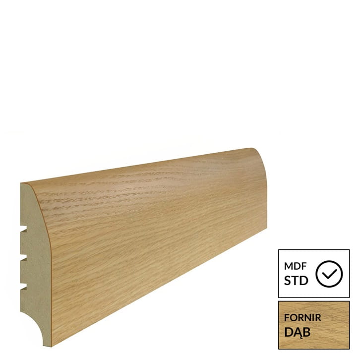 Wysokiej jakości fornirowana listwa przypodłogowa polskiego producenta wykonana na bazie płyty MDF.