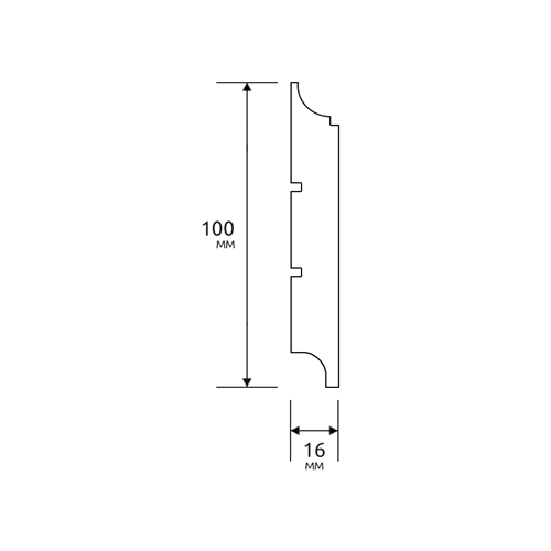 Lagrus Krym 100 PLUS to biała listwa przypodłogowa dostępna w rozmiarze 16 x 100 x 2440 mm w wersji MDF Plus.