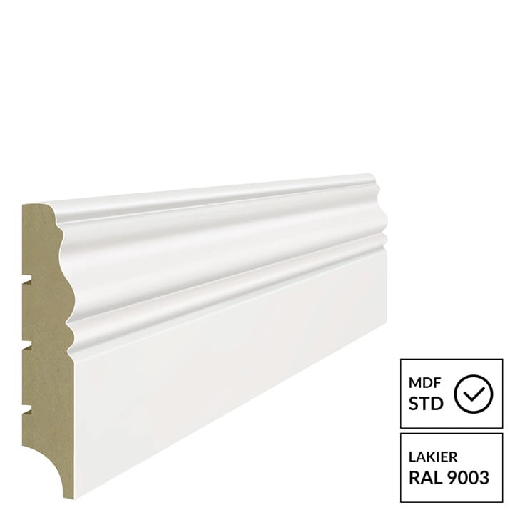 Wysokiej jakości lakierowana listwa przypodłogowa polskiego producenta wykonana na bazie płyty MDF.