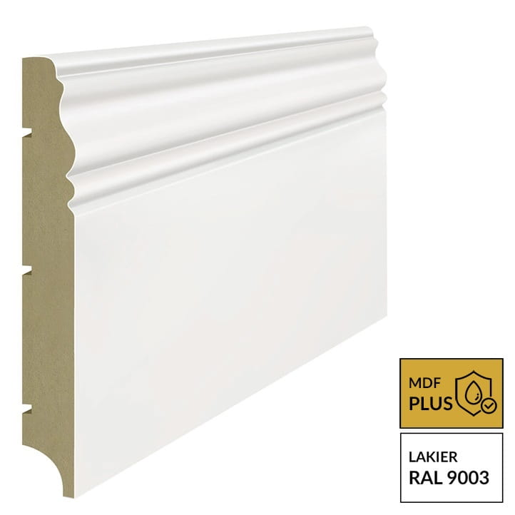 Wysokiej jakości lakierowana listwa przypodłogowa polskiego producenta wykonana na bazie płyty MDF.