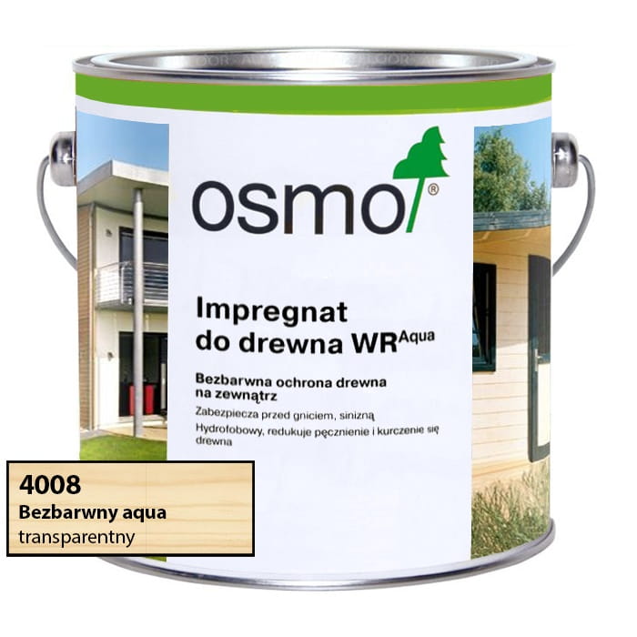 Osmo 4008 Impregnat do drewna WR Aqua nie jest samodzielną powłoką, lecz bezbarwnym gruntem stosowanym pod inne powłoki marki Osmo. Preparat chroni je przed zgnilizną, pleśnią i sinicą. Impregnat przeznaczony jest do stosowania do drewna zewnętrznego, które jest pozbawione bezpośredniego kontaktu z gruntem oraz obciążeń konstrukcyjnych - np. okna, rolety, drzwi, pergole, kratki, meble ogrodowe, itp. Impregnat jest silnie hydrofobowy i zapobiega pęcznieniu oraz kurczeniu się drewna.