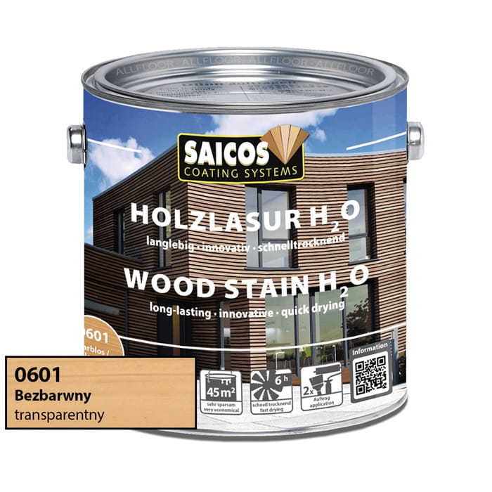 Saicos 0601 Lazura do Drewna H2O | bezbarwny | 0,75L / 2,5L