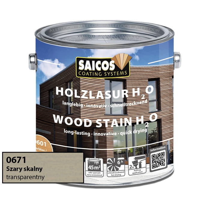 Saicos 0671 Lazura do Drewna H2O | szary skalny | 0,75L / 2,5L