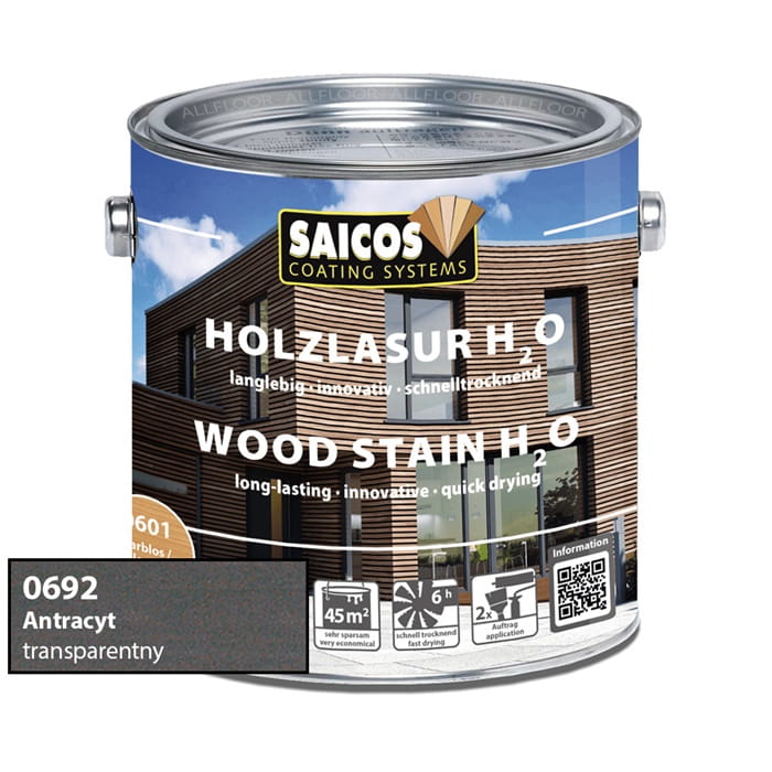 Saicos 0692 Lazura do Drewna H2O | antracyt | 0,75L / 2,5L