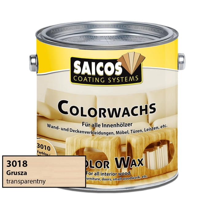 Saicos Color Wax został stworzony na bazie olejów naturalnych i jest odporny na ślinę oraz pot. Z tego powodu zalecany jest również do barwienia zabawek dla dzieci. Naturalne oleje wnikają głęboko w drewno, chronią je od wewnątrz i utrzymują elastycznym. Naturalne woski chronią powierzchnię, zapewniają jej wysoką odporność na zadrapania i sprawiają, że daje się łatwo pielęgnować. Produkt aplikowany pędzlem, wałkiem lub pieluchą tetrową.