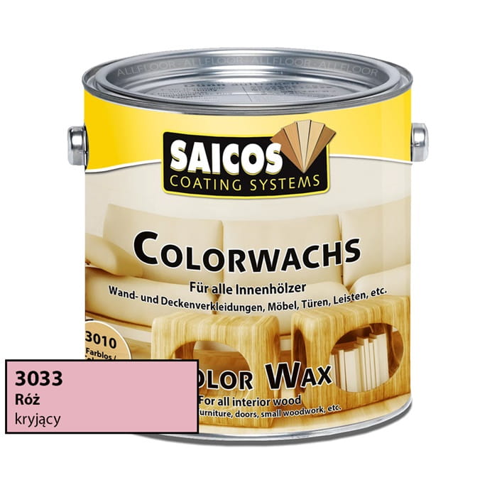 Saicos Color Wax został stworzony na bazie olejów naturalnych i jest odporny na ślinę oraz pot. Z tego powodu zalecany jest również do barwienia zabawek dla dzieci. Naturalne oleje wnikają głęboko w drewno, chronią je od wewnątrz i utrzymują elastycznym. Naturalne woski chronią powierzchnię, zapewniają jej wysoką odporność na zadrapania i sprawiają, że daje się łatwo pielęgnować. Produkt aplikowany pędzlem, wałkiem lub pieluchą tetrową.