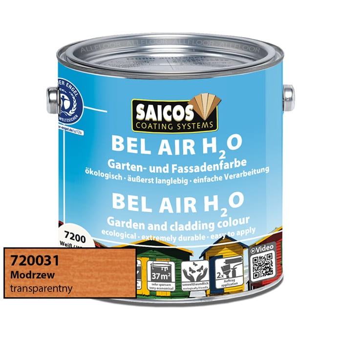 Saicos Bel Air H2O jest kryjącą lub przezroczystą powłoką na bazie wody do drewna znajdującego się na zewnątrz jak i wewnątrz pomieszczeń. Łączy zalety oddychającej powłoki z doskonałymi właściwościami odpornej na zabrudzenia farb. Swoje szczególne właściwości zawdzięcza specjalnie dla tego produktu rozwiniętej i zmodyfikowanej technologii tworzenia olejów.