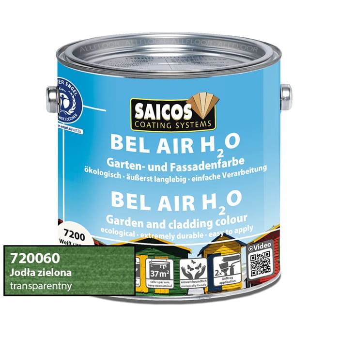 Saicos Bel Air H2O jest kryjącą lub przezroczystą powłoką na bazie wody do drewna znajdującego się na zewnątrz jak i wewnątrz pomieszczeń. Łączy zalety oddychającej powłoki z doskonałymi właściwościami odpornej na zabrudzenia farb. Swoje szczególne właściwości zawdzięcza specjalnie dla tego produktu rozwiniętej i zmodyfikowanej technologii tworzenia olejów.