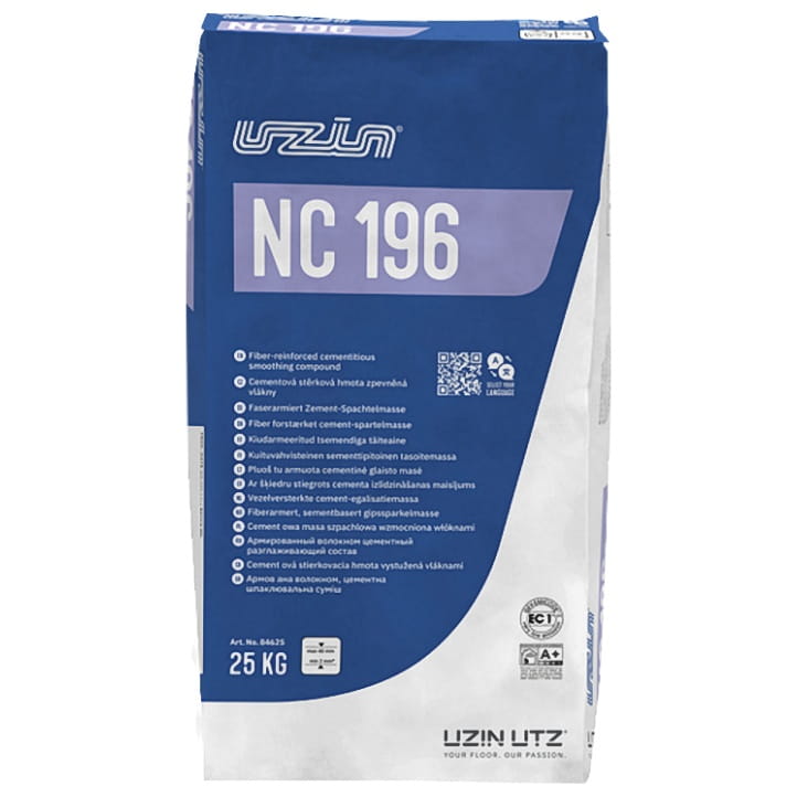 Uzin NC 196 to grubowarstwowa, cementowa masa niwelująca pod wykładziny, podłogi pływające, drewniane podłogi warstwowe i ceramikę. Możliwość stosowania w zakresie od 2 do 40mm. Realne parametry masy: C25 | F6.