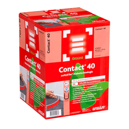 Uzin SwichTec Contact 40 to specjalna taśma do przyklejania m.in. cokołów dywanowych oraz pasków wykładziny na listwach przypodłogowych Döllken |